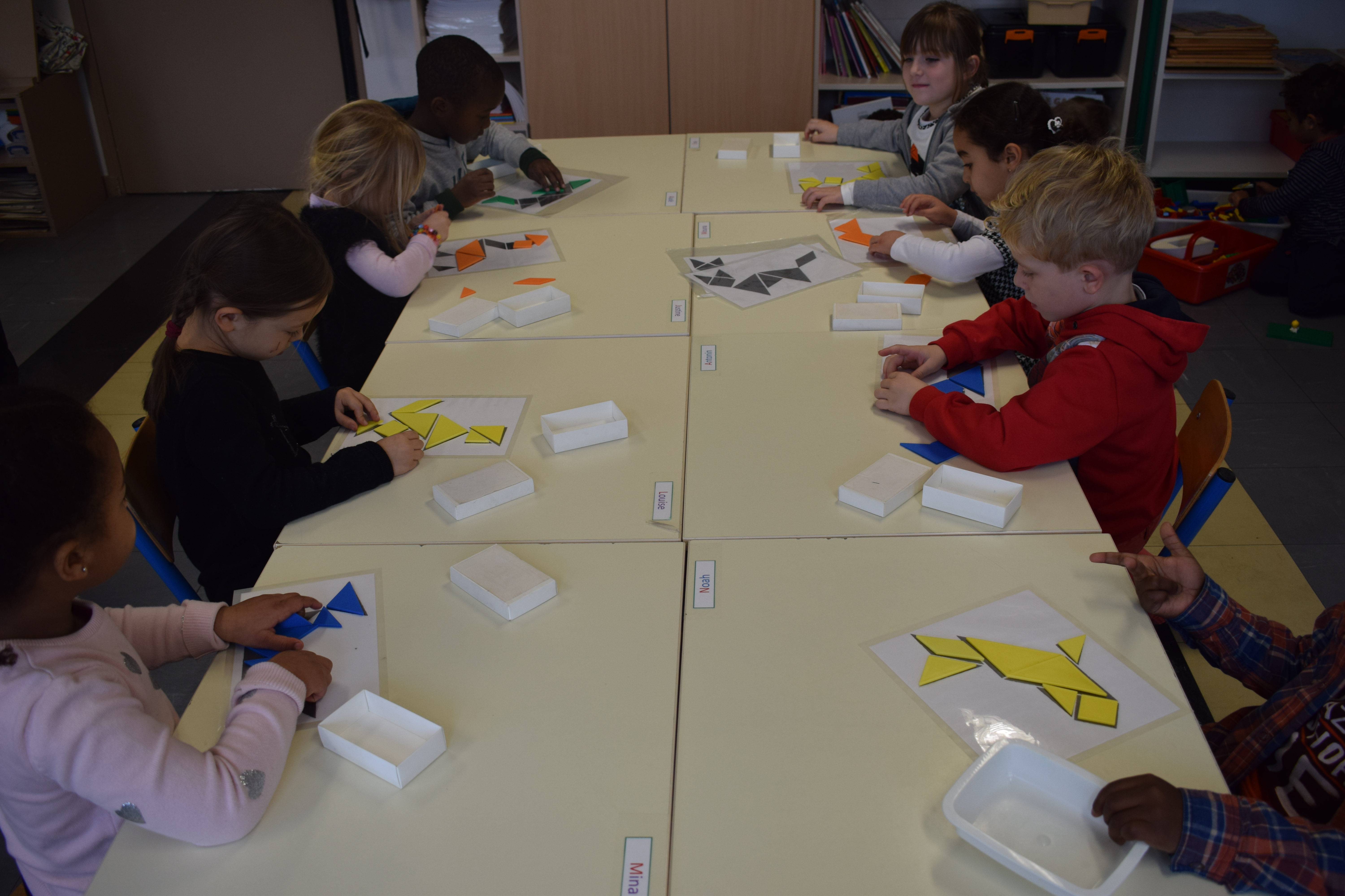 Le tangram 22 novembre 2016Classe de'Adeline0911236z Durant la période de novembre à décembre nous travaillons sur les formes géométriques avec pour point de départ un casse tête nommé tangram.