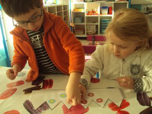 Jeudi 13 octobre , les enfants et maitresse Isabelle se sont amusés à faire les portraits de Nathalie et de leur maitresse à la façon de l’artiste Arcimboldo .